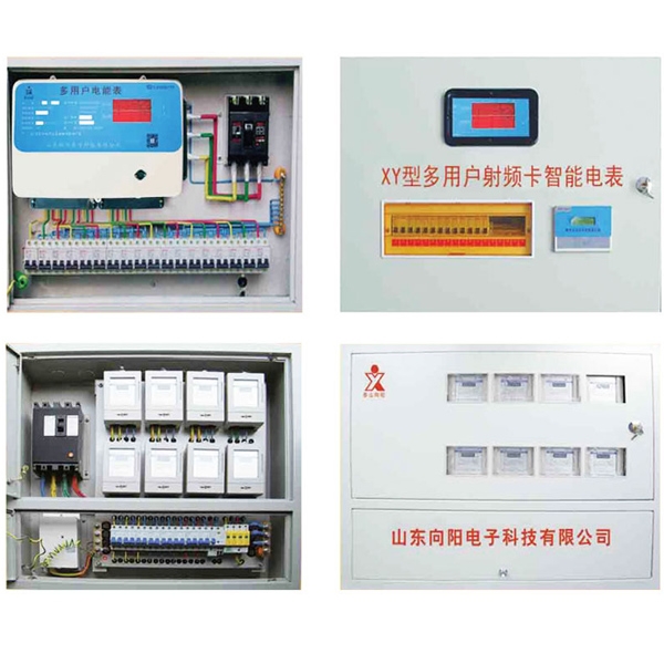 多用戶組合式配電箱內(nèi)置多用戶組臺(tái)式電能表、總進(jìn)線開關(guān)、分戶開關(guān)、零線和地線端子排等,分懸掛式和嵌墻式兩種,其體積因多用戶電能表的戶數(shù)和開關(guān)種類而變。